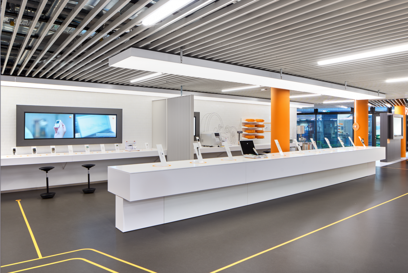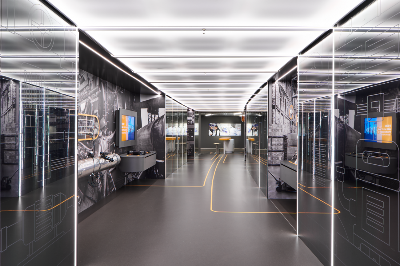 Das Ergebnis: eine Präsentationsfläche, die Produkte und Markenwelt erlebbar macht, Besucher intuitiv durch den Raum führt und Raumwirkung, Funktion und Design harmonisch verbindet.